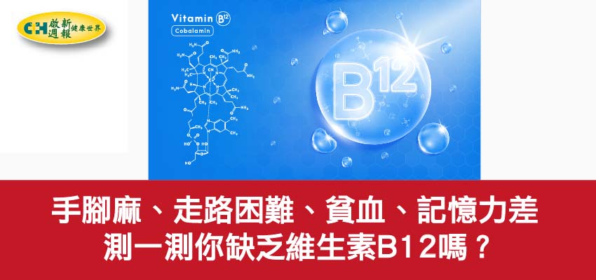 【評估分析】多數人認為手麻、腳麻應該是血液循環不良造成的,很少人會懷疑與缺乏維生素B12有關。維生素B12是人體神經傳導所需的物質,一旦不足可能產生神經傳導問題或神經受損,出現觸覺反應變慢及身體各處有發麻、刺痛的感覺,尤其是手腳特別明顯。