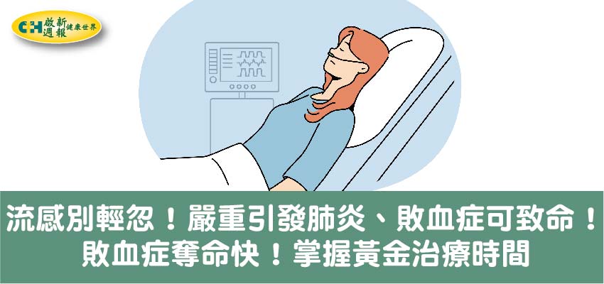 啟新醫學健康促進中心提醒,雖然敗血症經過治療可痊癒,但有些人會出現永久的器官受損、思考困難等後遺症。因此,若是有任何嚴重感染,千萬別拖延,在黃金智治療時間內,盡早至醫院交由專業醫師進行診斷與治療。